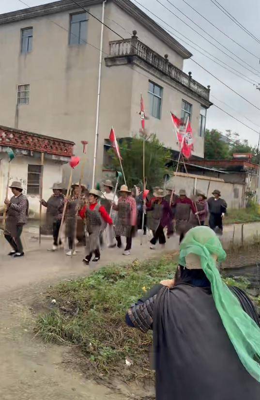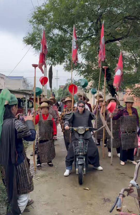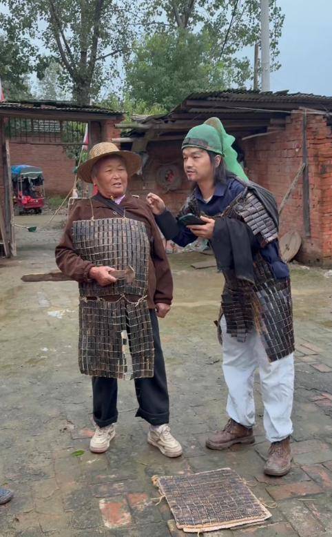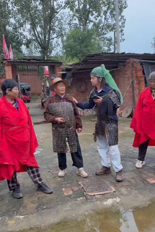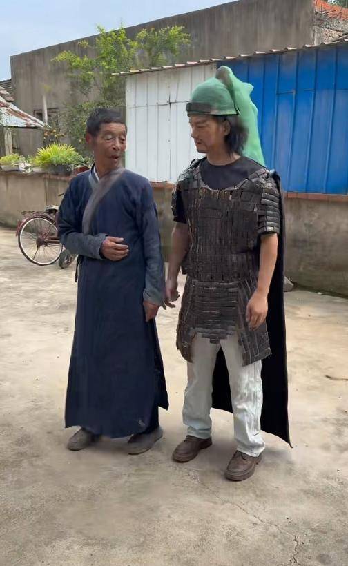 起初,和鲍小光一起的只有两三个人,“当时就我和我的邻居,大家在视频里面看到的‘丞相’就是我邻居,一个70多岁的大爷。”鲍小光介绍,“丞相”扮演者有三个女儿,都已出嫁,老伴去世多年,平日里该老人独自在家,“后来慢慢拍的人就多了,现在大概有20个左右,全是村里的老人。也有年轻人,主要是朋友过来帮忙,也有看到我拍摄之后,主动参与过来的。”